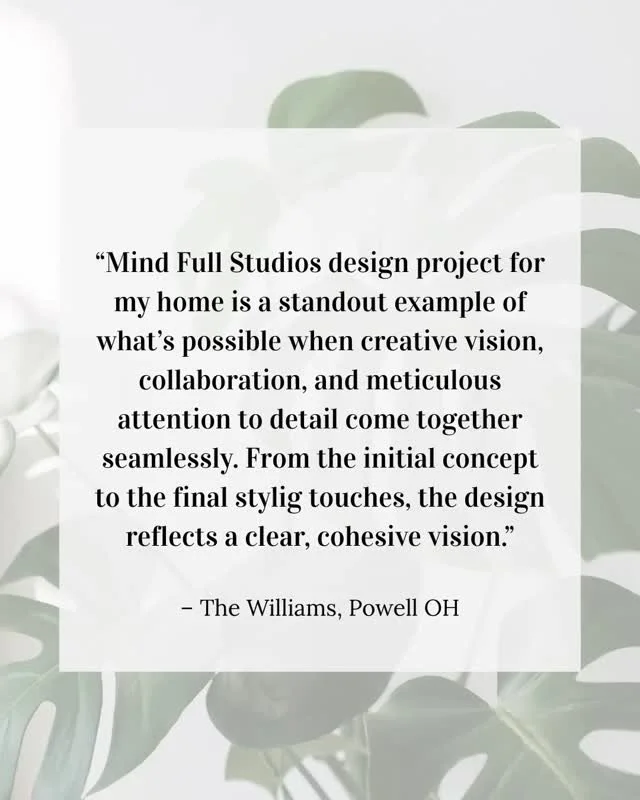 At Mind Full Studios, we focus on creating spaces that are both beautiful and restorative, using design principals that enhance mental clarity and well-being, whether for your home or workplace.